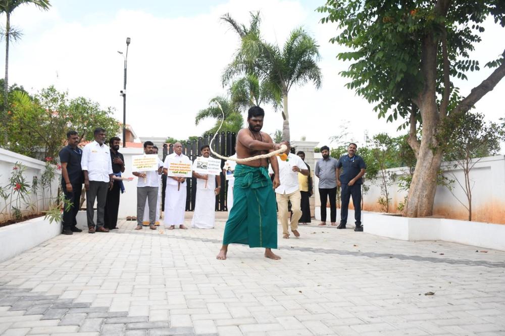 அண்ணா பல்கலை மாணவி பாலியல் வன்கொடுமையை எதிர்த்து, திமுக அரசை விமர்சித்து கோவையில் தனது வீட்டு முன்பு பாஜக மாநில தலைவர் அண்ணாமலை இன்று (டிச.27) காலை தன்னைத் தானே சாட்டையால் அடித்து போராட்டம் நடத்தினார். கோவை, காளப்பட்டி சாலையில் அமைந்துள்ள அவரது வீட்டின் முன், இன்று காலை 10 மணியளவில் தொண்டர்கள் முன்னிலையில் இந்த நிகழ்வு நடைபெற்றது. பின்னர், செய்தியாளர்களை சந்தித்த அண்ணாமலை, “இன்று நாங்கள் முன்னெடுத்துள்ள இந்தப் போராட்டம் மேலும் தீவிரமடையும். இது தனி நபருக்கு எதிரான போராட்டம் அல்ல. தமிழகத்தில் கல்வித் தரம் குறைந்துள்ளது” எனக் கூறினார். திமுக ஆட்சியிலிருந்து நீக்கப்படும்வரை காலணியை அணிய மாட்டேன். இந்த அரசு தவறான வழியில் செயல்படுகிறது. அறவழியில் போராடுவதற்கும் அனுமதி இல்லை. இதனை எதிர்த்து நாங்கள் போராட்டத்தை முன்னெடுத்துள்ளோம். நாங்கள் தவறுகளை எதிர்த்து அரசியல் செய்கிறோம். அரசியலில் தேர்தல் வெற்றி அல்லது தோல்வி என்பது முக்கியமல்ல. 2026 ஆம் ஆண்டின் தேர்தலில் தோல்வியடைந்தாலும், நான் கவலைப்பட மாட்டேன். முன்னதாக, அண்ணாமலை சாட்டையால் அடிக்கப்படும்போது, பாஜக தொண்டர்கள் வெற்றிவேல், வீரவேல் எனக் கூச்சலிட்டனர், மேலும் “வேண்டாம், வேண்டாம், சாட்டையடி வேண்டாம்” எனவும் கூறினர்.