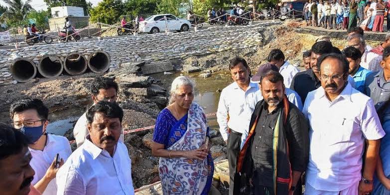 தூத்துக்குடியில் வரலாறு காணாத கனமழையால் ஏற்பட்ட வெள்ளத்தால், சேதமடைந்த பகுதிகளை மத்திய நிதியமைச்சர் நிர்மலா சீதாராமன் இன்று (டிச.26) நேரில் ஆய்வு செய்தார். வெள்ள நிவாரண பணிகளுக்கு போதுமான நிதியை மத்திய அரசு வழங்க வலியுறுத்தி நிர்மலா சீதாராமனிடம் தமிழ்நாடு அரசு சார்பில் மனு அளிக்கப்பட்டது. இதுகுறித்து முதலமைச்சர் மு.க.ஸ்டாலின் தனது ட்விட்டர் (எக்ஸ்) தளத்தில் பதிவிட்டுள்ளார்.வெள்ள பாதிப்புகளைப் பார்வையிட்ட மத்திய நிதியமைச்சர் நிர்மலா சீதராமனிடம், நிவாரண நிதியின் அவசியத்தை வலியுறுத்தி 72 பக்கங்கள் கொண்ட மனுவையும் அளித்துள்ளனர். மாநில பேரிடர் நிவாரண நிதி போதுமான அளவு இல்லாததால், மத்திய அரசு போதுமான நிவாரண நிதியை வழங்கிட வேண்டுமென அந்த அறிக்கையில் கூறப்பட்டிருந்தது.