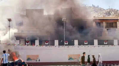 யூனியன் பிரதேசமாக உள்ள லடாக்கிற்கு தனி மாநில அந்தஸ்து வழங்க வேண்டும். அதேபோல் அரசியலமைப்பின் 6வது அட்டவணையில் சேர்க்க வேண்டும் என்ற கோரிக்கையை வலியுறுத்தி போராட்டம் நடந்து வருகிறது. கடந்த 10ம் தேதி முதல் உண்ணாவிரத போராட்டமும் நடந்து வருகிறது. இந்த போராட்டம் தொடர்பாக மத்திய அரசு சார்பில் அடுத்த மாதம் (அக்டோபர்) 6ம் தேதி பேச்சுவார்த்தை நடத்துவதாக அறிவிக்கப்பட்டுள்ளது. இதனையடுத்து இன்று முழு அடைப்பு போராட்டத்துக்கு அழைப்பு விடுக்கப்பட்டது. அதன்படிம் இன்று காலையில் முழு அடைப்பு போராட்டம் நடந்து வருகிறது. அப்போது போராட்டக்காரர்களுக்கும், போலீசாருக்கும் இடையே தள்ளுமுள்ளு ஏற்பட்டது. அதே நேரத்தில் ஆத்திரமடைந்த போராட்டக்காரர்கள் வன்முறையில் ஈடுபட்டனர்.போலீசாரின் வாகனங்களுக்கு தீவைத்தனர். அதுமட்டுமின்றி மத்திய அரசுக்கு எதிர்ப்பை தெரிவிக்கும் வகையில் லே நகரில் உள்ள பாஜக அலுவலகத்திற்கு தீ வைத்து அதன் மீது கல்வீசி தாக்குதல் நடத்தினர். இதனால் அங்கு பதற்றமான சூழல் நிலவி வருவதையடுத்து போலீசார் குவிக்கப்பட்டுள்ளனர்.