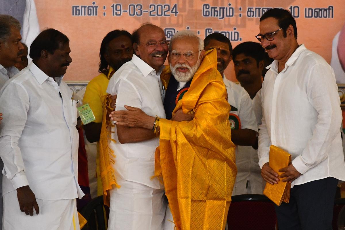 கோவையைத் தொடர்ந்து சேலத்தில் நடக்கும் பாஜக பொதுக்கூட்டத்தில் பிரதமர் மோடி பங்கேற்றுள்ளார். சேலம் கெஜல்நாயக்கன்பட்டியில் பாஜகவின் பிரமாண்ட பொதுக்கூட்டம் நடைபெற்று வருகிறது. இந்த பொதுக்கூட்டத்தில் பாஜக கூட்டணி கட்சிகளான பாமக, இந்திய ஜனநாயக கட்சி உள்ளிட்ட கட்சிகளின் தலைவர்கள் பங்கேற்றுள்ளனர்.