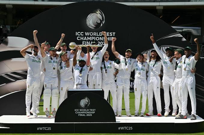 இறுதியில் தென் ஆப்பிரிக்க அணி, 83.4 ஓவர்களில் இலக்கை கடந்து 5 விக்கெட் வித்தியாசத்தில் வெற்றி பெற்றது. அத்துடன், முதல் முறையாக ஐசிசி டெஸ்ட் சாம்பியன் ஆனது. இந்நிலையில், 27 ஆண்டுகளுக்குப் பிறகு ஐ.சி.சி. சாம்பியன் பட்டத்தை தென் ஆப்பிரிக்கா தற்போது வென்றுள்ளது. கடைசியாக 1998ம் ஆண்டு நவம்பர் 1ம் தேதி நடைபெற்ற ஐ.சி.சி. சாம்பியன்ஸ் டிராபி கோப்பையை தென் ஆப்பிரிக்கா வென்றது. அதன்பின்னர், ஐ.சி.சி. கோப்பை எதையும் தென் ஆப்பிரிக்கா வெல்லவில்லை. தற்போது 27 ஆண்டுகளுக்குப் பிறகு ஐ.சி.சி. உலக டெஸ்ட் சாம்பியன்ஷிப் கோப்பையை தென் ஆப்பிரிக்கா வென்றுள்ளது. ஐ.சி.சி. சாம்பியன் பட்டம் வென்ற தென் ஆப்பிரிக்காவுக்கு பல்வேறு தரப்பினரும் வாழ்த்து தெரிவித்து வருகின்றனர்.
